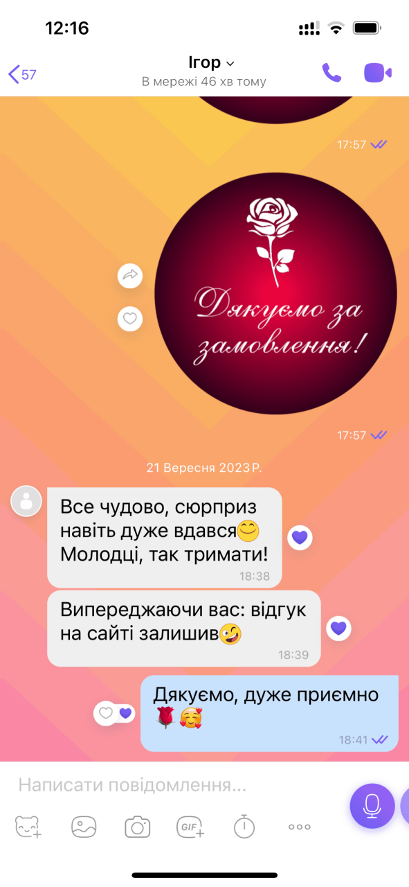 Дуже вам дякую за розу в колбі. Вона ідеальна, просто слів нема яка вона гарна. Стабілізована ро..